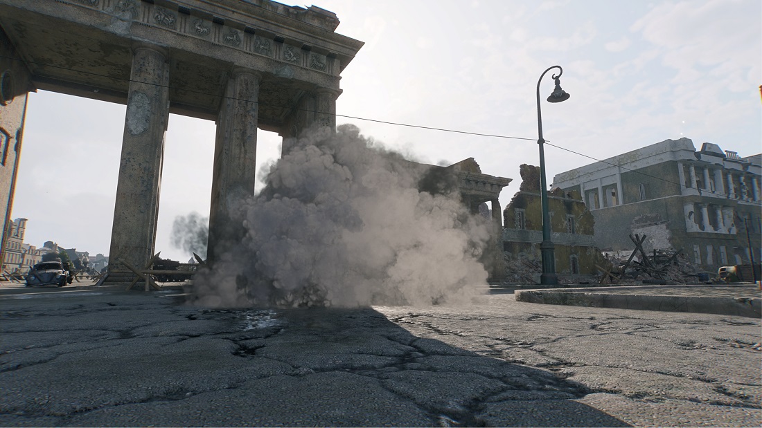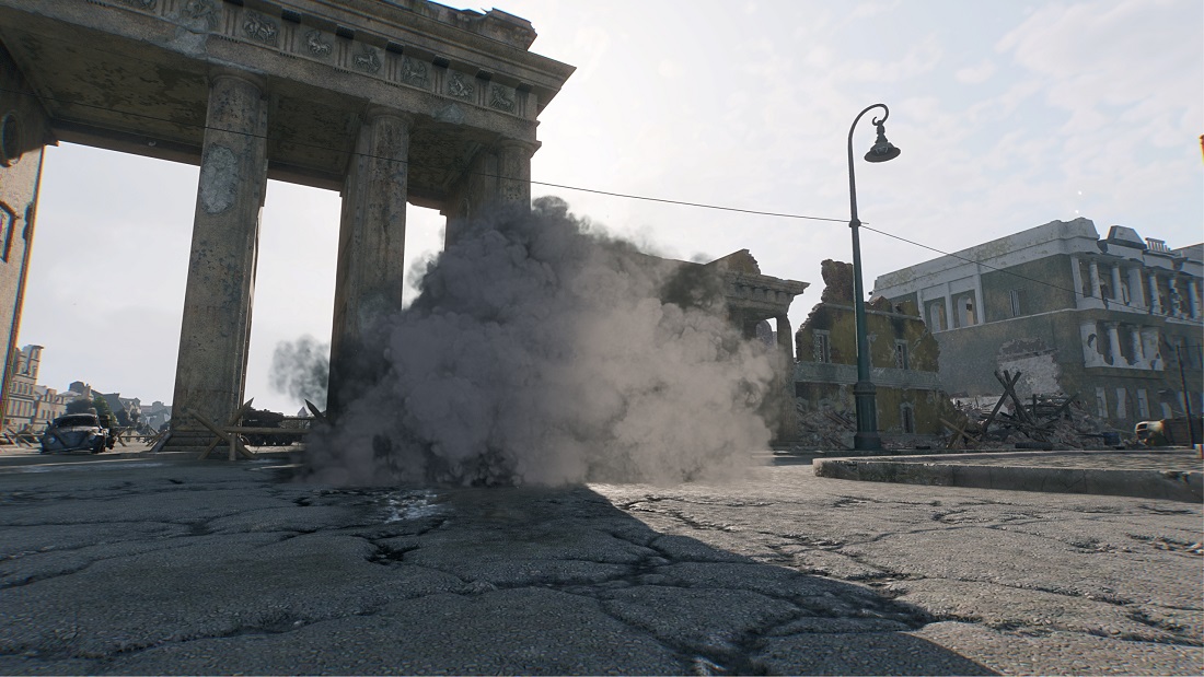 The guns produce a significant amount of smoke and while that's realistic, in some scenarios it can significantly hamper visibility. To improve the gameplay experience we dynamically balance the alpha of these smoke effects so that you don't lose visibility when shooting from a bright location into a dark room for example.