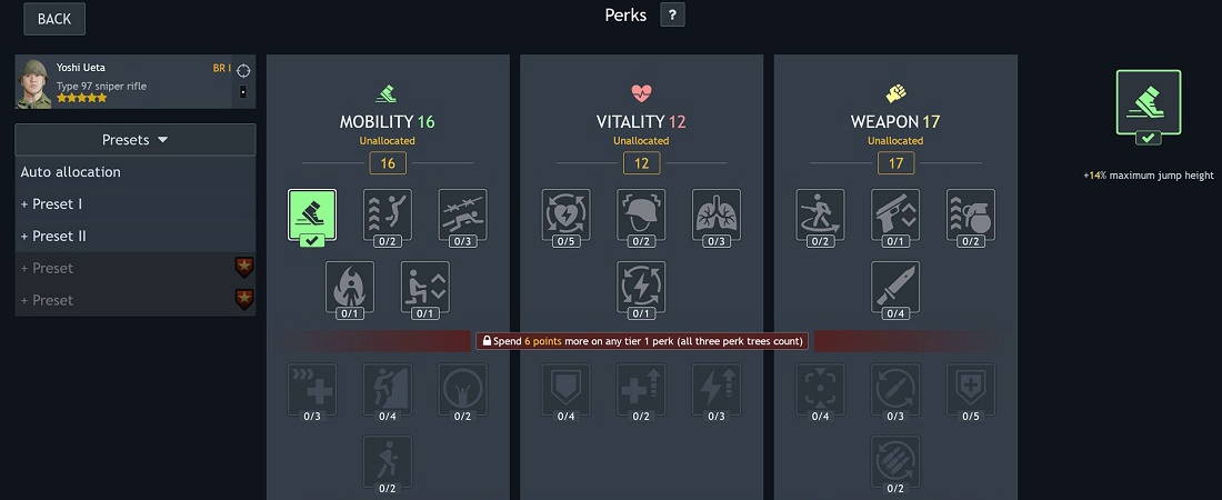 - Added the ability to create perk presets for soldiers.