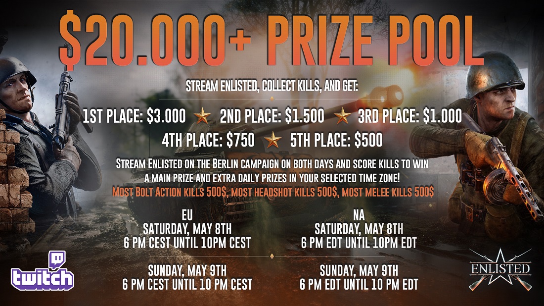 Prizes will be awarded to participants in each time zone who achieve the most kills in several categories, for each day and in total.