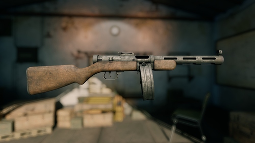 The predecessor of the well-known PPSh submachine gun, which was in service with the Soviet army at the beginning of World War II. The high rate of fire and the 71-round magazine of this submachine gun open up the most aggressive combat tactics for the shooter. It may not offer the highest damage potential, but this is very much compensated by the incredible fire rate and very low recoil, even in long bursts.