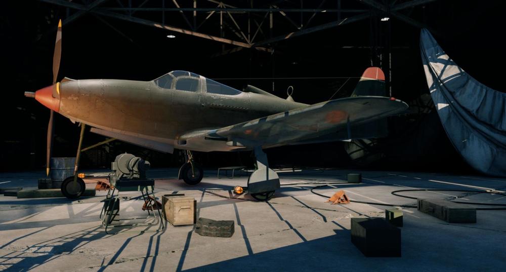 One of the Kingcobra fighters supplied to the Soviet Union under the Lend-Lease program. It performed well at low to medium altitudes and was well protected and armed. An armored backplate, frontal armor plate, and armored glass protect the pilot from some attacks. Even the rear placed engine can soak up some machine gun fire.