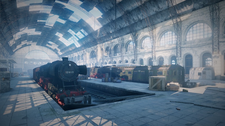 To get the scale of the building - just hear the clamping of the tank caterpillars. The train station was large enough to use armored vehicles inside! Apart from large platforms with stationary locomotives, those who like covert maneuvers will find a lot of administrative buildings to use as cover.