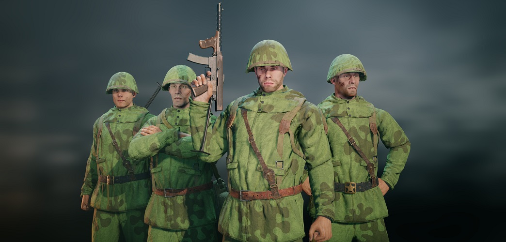 Squad of the 14th Guards Infantry Division, 38th Guards Infantry Regiment with 4 assaulters of rank IV, armed with Kalashnikov SMGs (PPK-42).