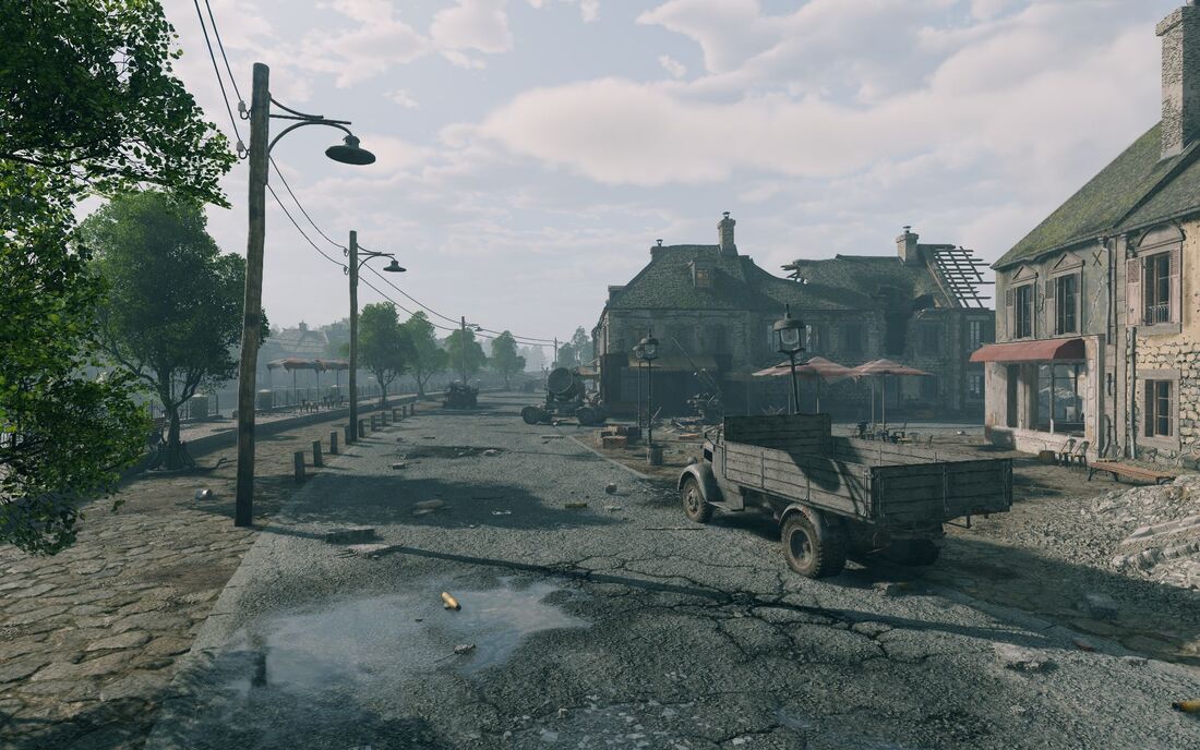 Already familiar open fields, swamps and small huts of the Normandy shore change as you move deeper. You find large cities with paved roads, rows of many stores and dense buildings. The city we are presenting is inspired by the city of Saint-Omer in Northern France. And you will have to fight for it.