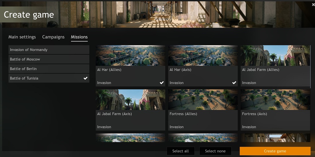 In the map rotation of the game you created will be only those missions that you choose yourself, and with the rules that you set. Classic opponents or mixed teams of soldiers from all Enlisted game nations. Hardcore squad action with no markers or mini-maps, or just the opposite - single-player battles with squad combat rules.