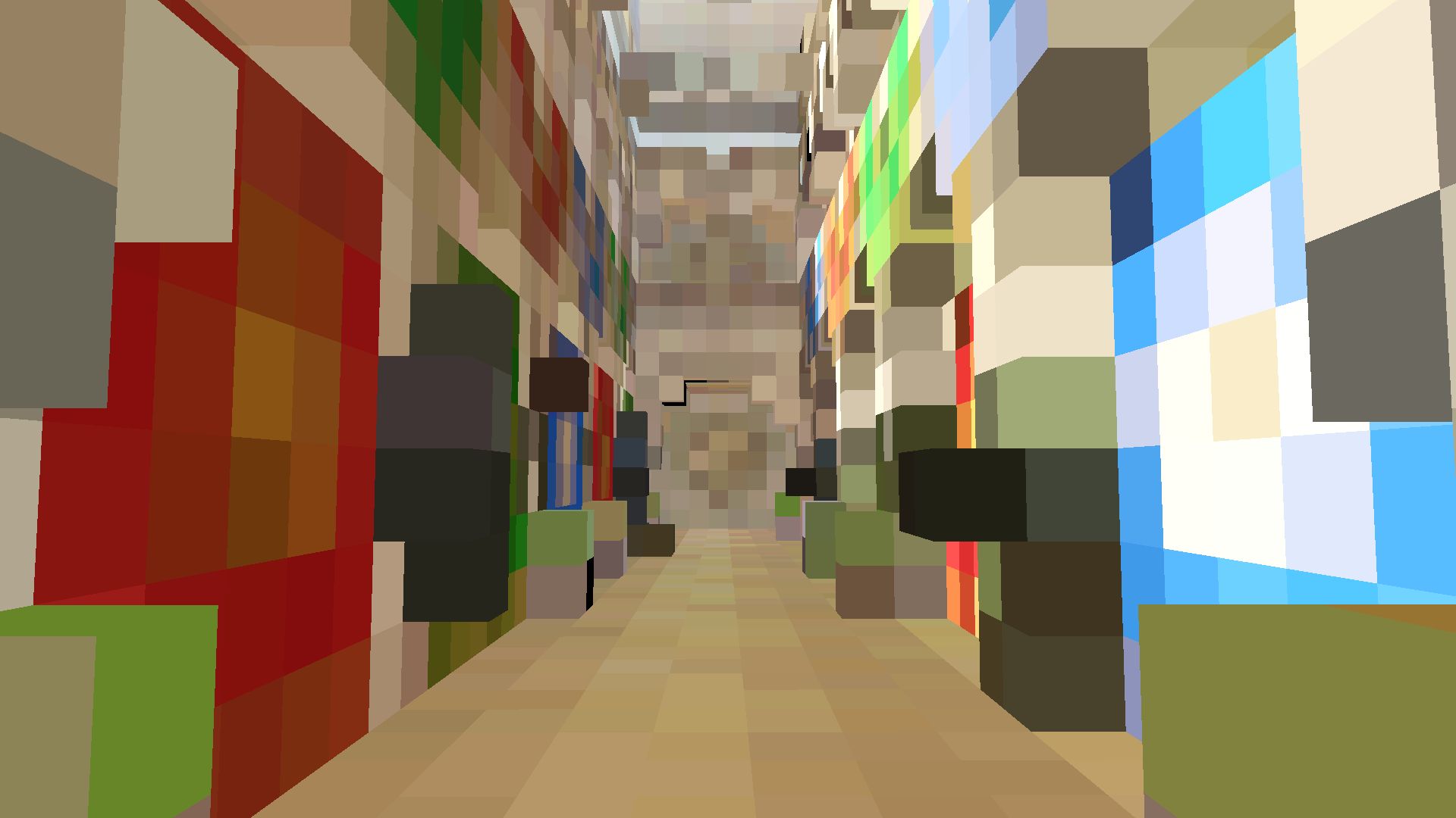 Fig. 10. From top to bottom: Voxel scene representation without translucency fix. Darkening caused by inadequate representation. Voxel scene representation with translucency fix. Result picture is much brighter and greener.