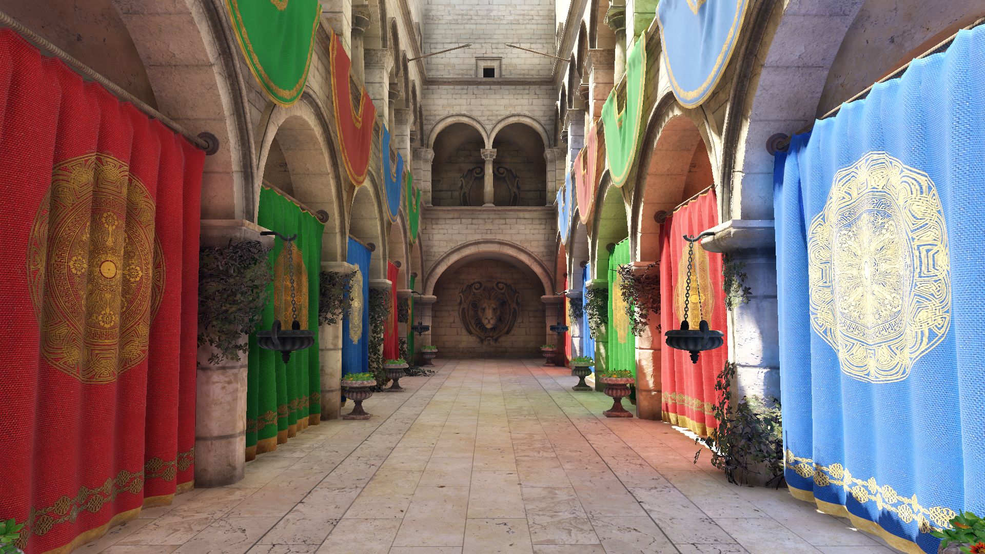 Fig. 8. Ceiling is lit only with second and third bounces. Colored third bounce on the floor