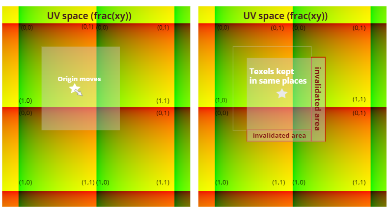 Fig. 2. When the clipmap texture origin moves we don’t copy or re-write any valid data.