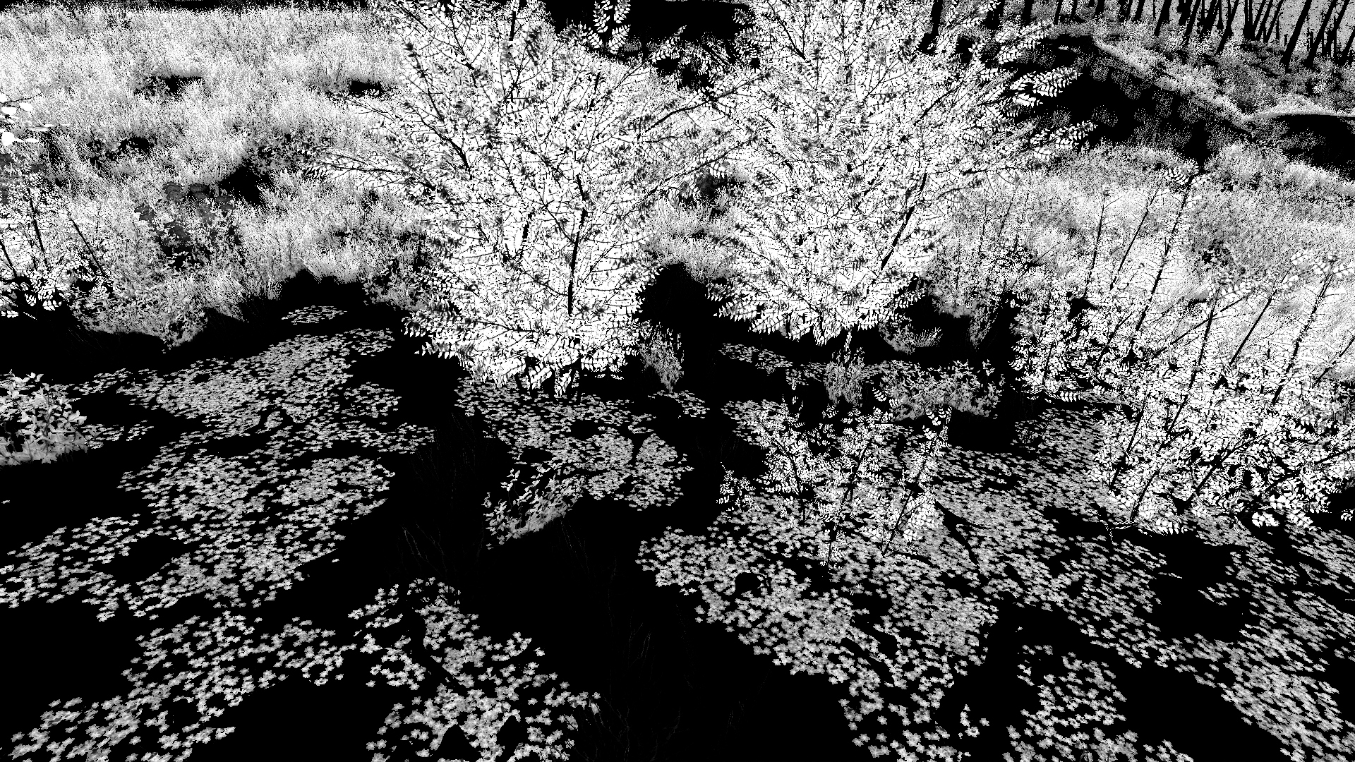 Fig. 9. The grassy scene with a lot of sparse foliage (left) and it’s correspondent g-buffer translucency channel (right).