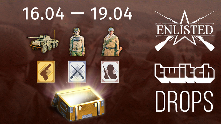 To celebrate the start of OBT, from the 16th of April (16:00 GMT) until the 19th of April (16:00 GMT), we have prepared unique rewards for Enlisted players that can be received by watching Enlisted streams on Twitch — Watch every day for new rewards!